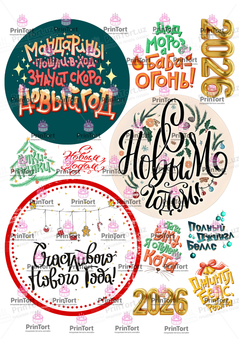 Картинка для торта "Новый Год (New Year)" - PT2722 28000 UZS – 55000 UZS