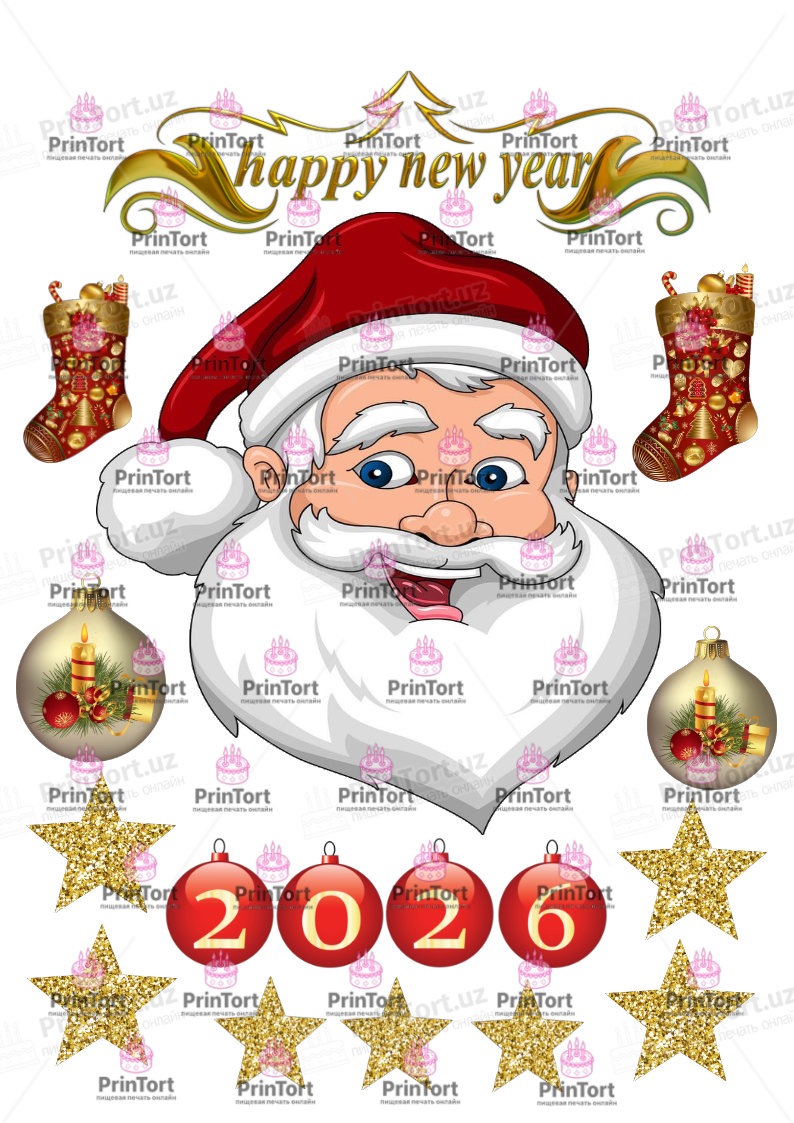 Сахарная и вафельная Картинка для  торта «Новый Год (New Year)» — PT1942 | Пищевая печать на торте, сахарной, вафельной бумаге -> PrinTort.uz