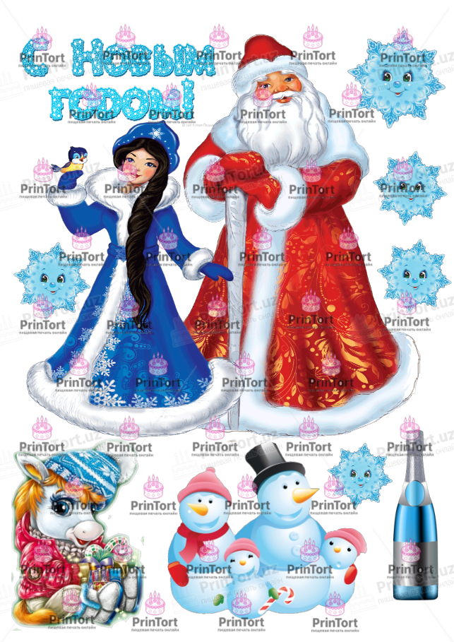 Сахарная и вафельная Картинка для  торта «Новый Год (New Year)» — PT1957 | Пищевая печать на торте, сахарной, вафельной бумаге -> PrinTort.uz