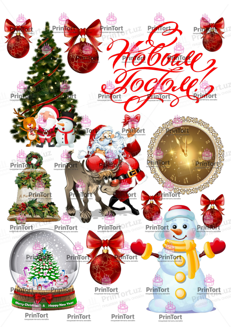 Сахарная и вафельная Картинка для торта «Новый Год (New Year)» — PT2006 | Пищевая печать на торте, сахарной, вафельной бумаге -> PrinTort.uz