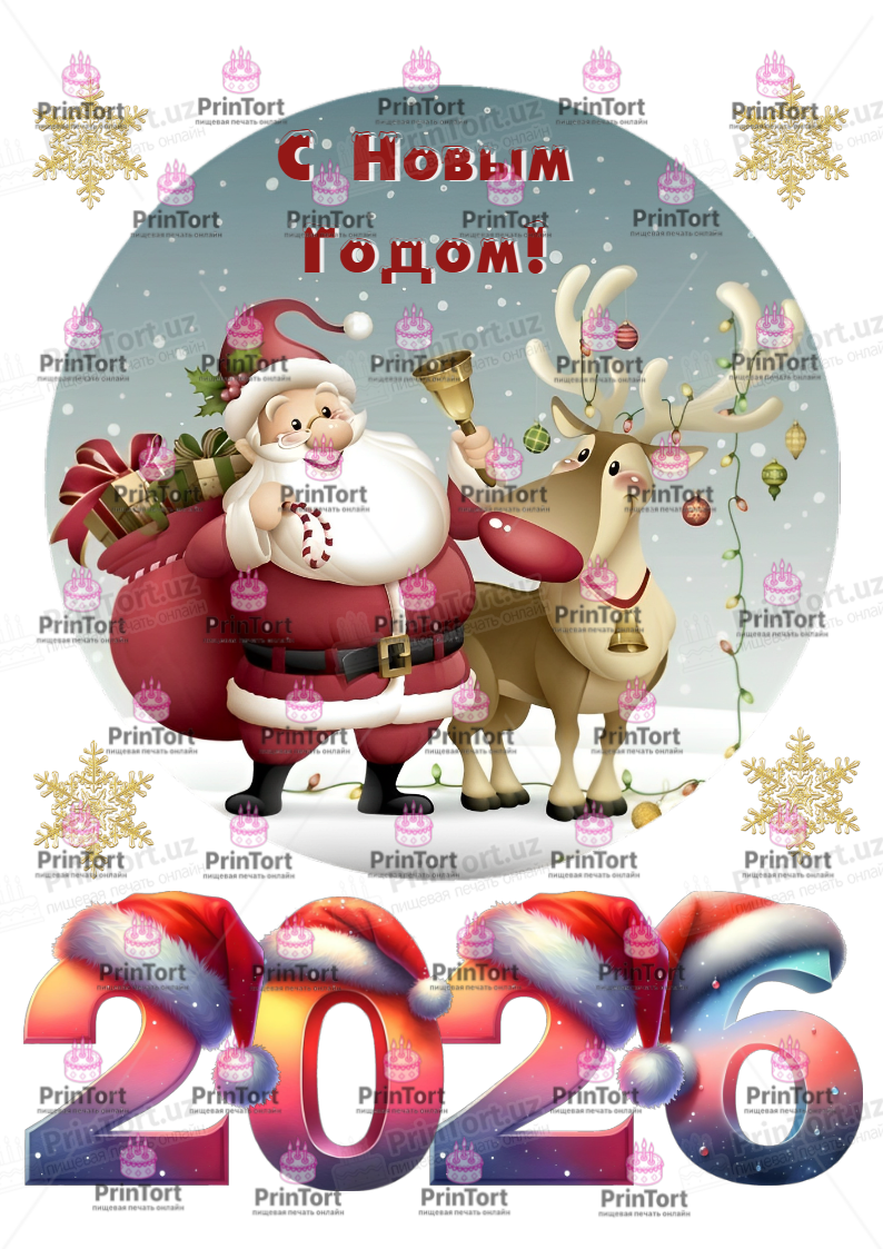 Сахарная и вафельная Картинка для  торта «Новый Год (New Year)» — PT2431 | Пищевая печать на торте, сахарной, вафельной бумаге -> PrinTort.uz