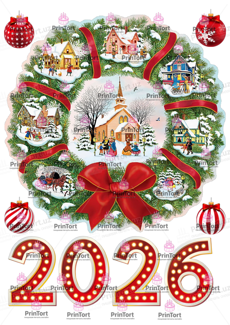 Сахарная и вафельная Картинка для  торта «Новый Год (New Year)» — PT2441 | Пищевая печать на торте, сахарной, вафельной бумаге -> PrinTort.uz