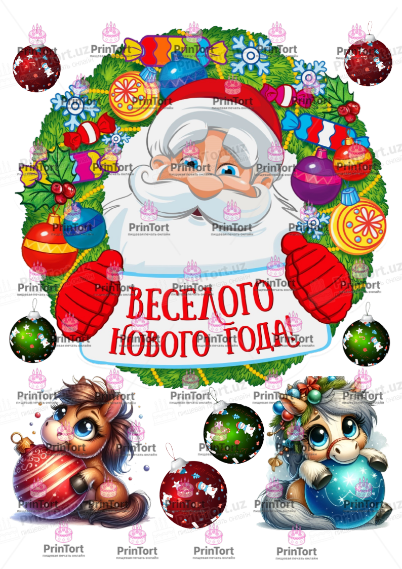 Сахарная и вафельная Картинка для  торта «Новый Год (New Year)» — PT2442 | Пищевая печать на торте, сахарной, вафельной бумаге -> PrinTort.uz