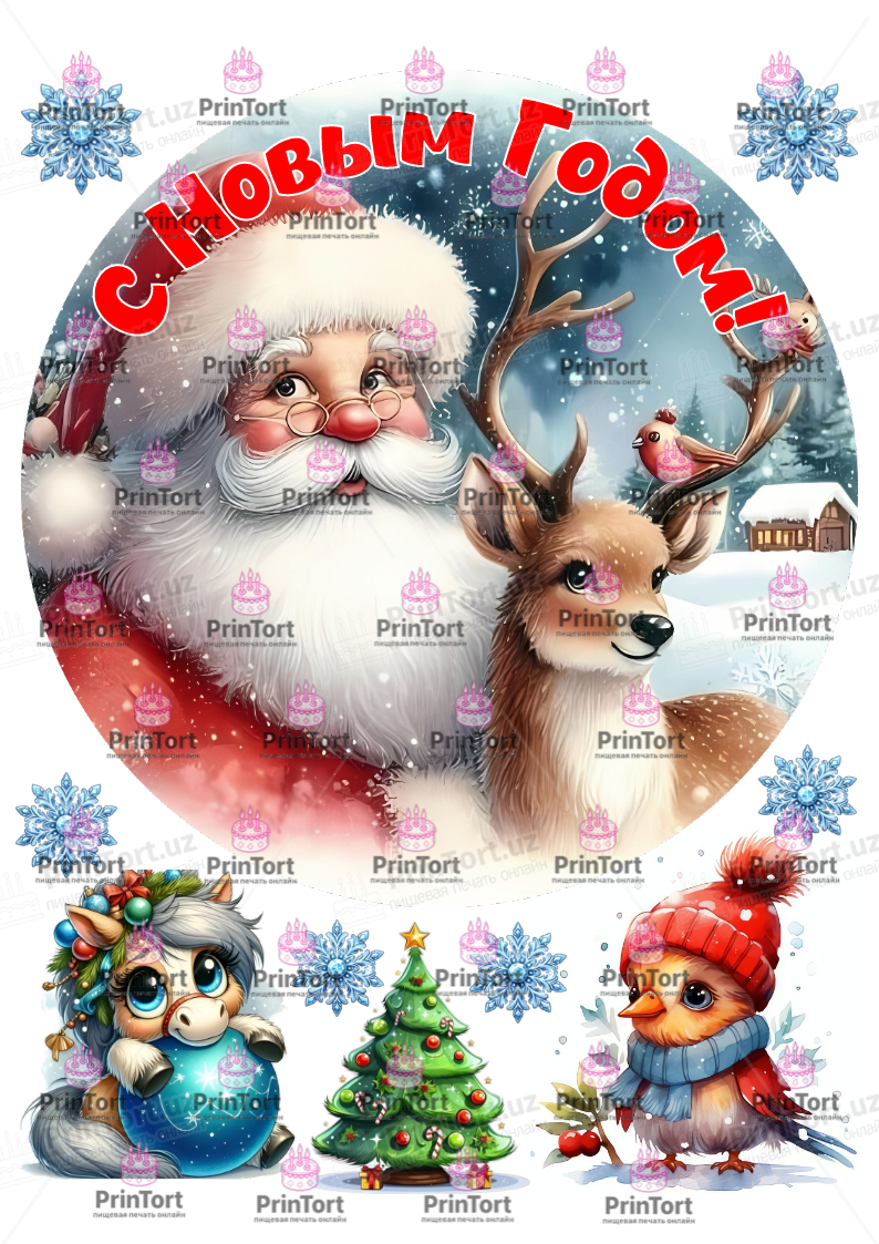 Сахарная и вафельная Картинка для  торта «Новый Год (New Year)» — PT2575 | Пищевая печать на торте, сахарной, вафельной бумаге -> PrinTort.uz