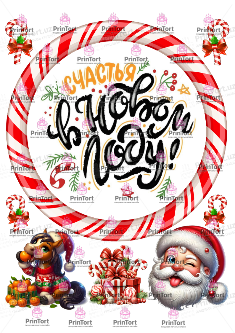 Сахарная и вафельная Картинка для  торта «Новый Год (New Year)» — PT2722 | Пищевая печать на торте, сахарной, вафельной бумаге -> PrinTort.uz
