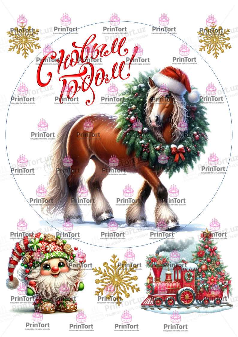 Сахарная и вафельная Картинка для  торта «Новый Год (New Year)» — PT2736 | Пищевая печать на торте, сахарной, вафельной бумаге -> PrinTort.uz