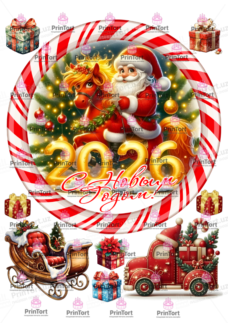 Сахарная и вафельная Картинка для  торта «Новый Год (New Year)» — PT2740 | Пищевая печать на торте, сахарной, вафельной бумаге -> PrinTort.uz